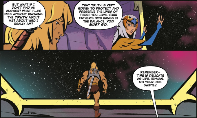 Another thing, Randor's outburst in the show contradicts the comic too. He literally says that He-man keeps secrets the King should never hear. He acknowledges this, then he lashes out at Duncan when it's not his fault and banishes Orko as he's dying.