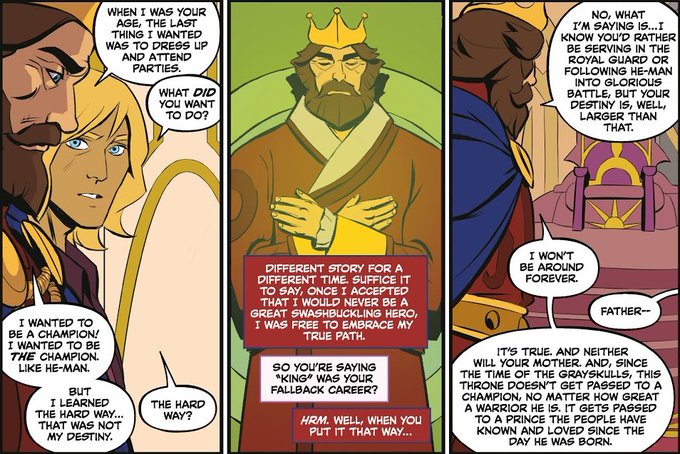 The whole point of this comic is the importance of keeping this secret. Otherwise he could end up like King Grayskull who lost his son because of it. This is literally the logic they made for the show and they turn around and put the blame on Adam.😠