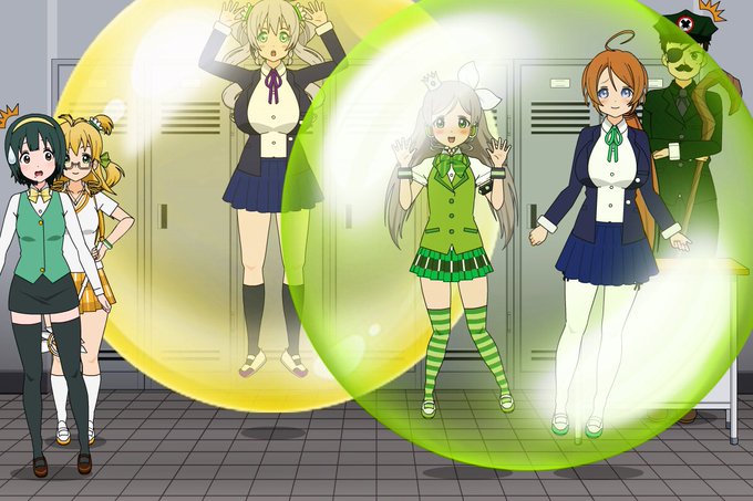 絵里が放った2つのバブルは、リゼと海未ちゃんを包み込みました。