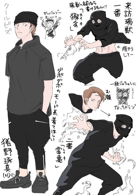 #猪野推しによる猪野推しのための猪野 このタグ使いたかったので…!!🐗くん練習帳。ポーズのお手本を見ながら。