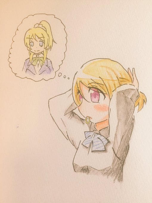 わたしにはえりぱなはよーわからんけど、例えばかよちんが自宅でこっそり「絵里ちゃんの髪型真似してみようかな...」とかやってたら、そりゃあ身悶えするほど可愛いと思いますよ。 #土曜だしえりぱな描こうday