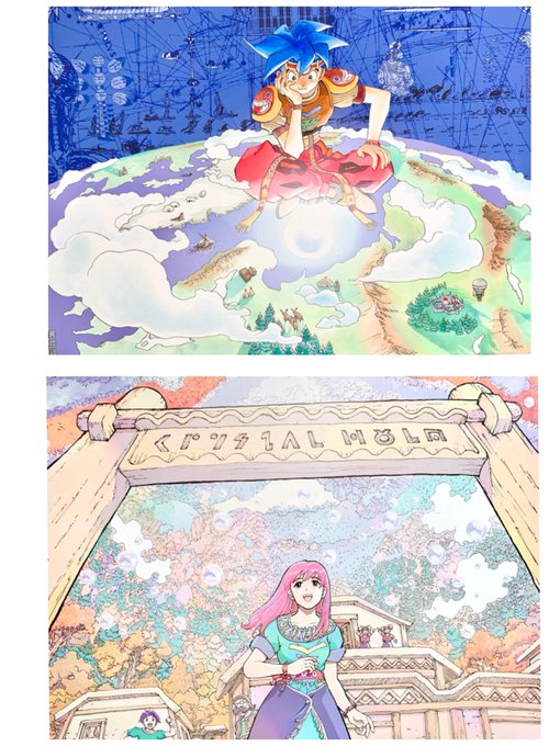 江口夏実先生もアナログで原稿描いてらっしゃる様で…トーン貼り生原稿とコピックやカラーインク(だと思われる)カラーイラストが沢山ありました。配色が綺麗でした✨