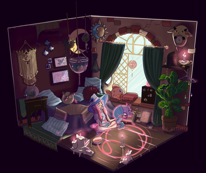 One of my New Years resolutions was to practice drawing backgrounds more! So here is the start to a year long project: Witchy Zodiacs! Starting off with Capricorn, the first zodiac of the year 🐐🐬♑️ #isometric #digitalart #backgroundart