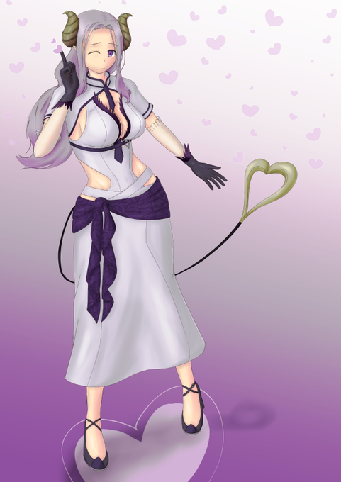 こちら以前練習で描いたシャルちゃんハーフアップですけど、シャルちゃんの場合角との干渉をどうクリアするかというのが課題になりますので、描く方は解釈も頼みます…!
