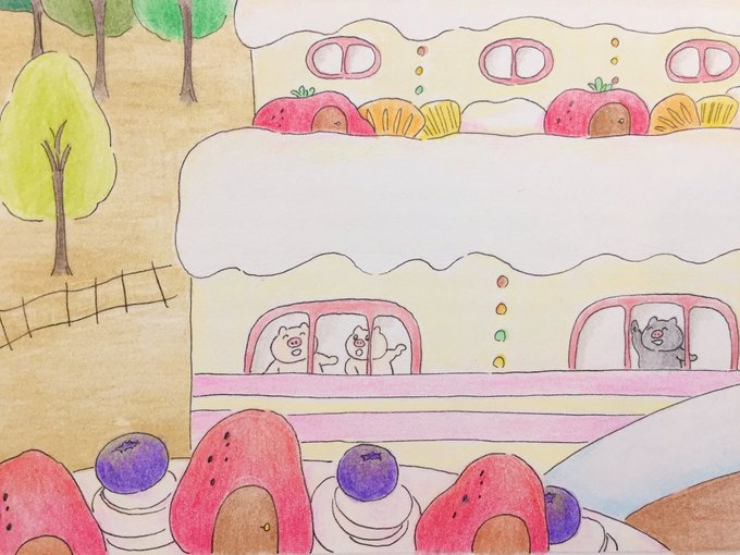ケーキの国 #ぶた #イラスト