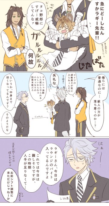 ラギーくんが幼児化した話(1/2) 前に描いたラギーくんが幼児化した絵の続き描いた😊 捏造のオンパレード🙂 唸るラギーくんが見たくてアズールが犠牲になって本当にごめん好きだよ