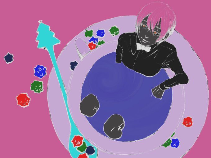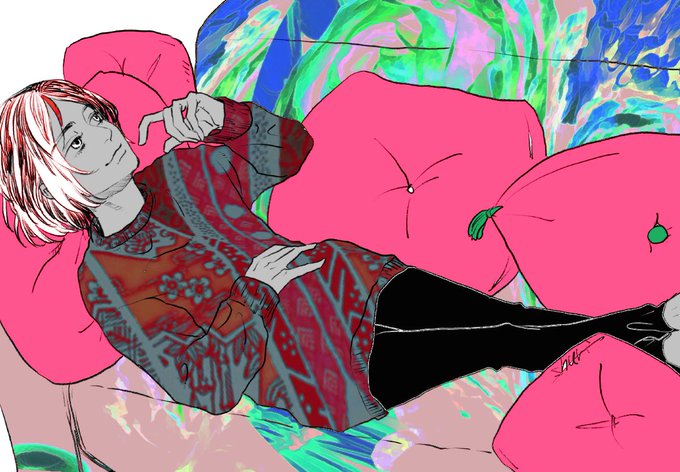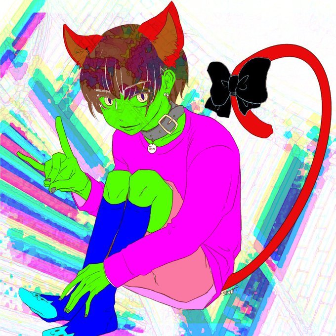 シュリさん @it_shuri の線画塗らせていただきました。激しい色遣い、楽しんでいただけたら幸いです。素敵な機会をありがとうございますー! https://t.co/6RTey62wkk
