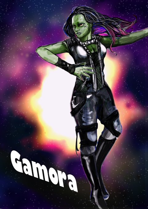 ガーディアンズオブギャラクシーより素敵ガモーラ様😈✨めっちゃカッコよく描けたよ!最近星空を背景にしがちです😂✨他の3人も頑張って描こう!!