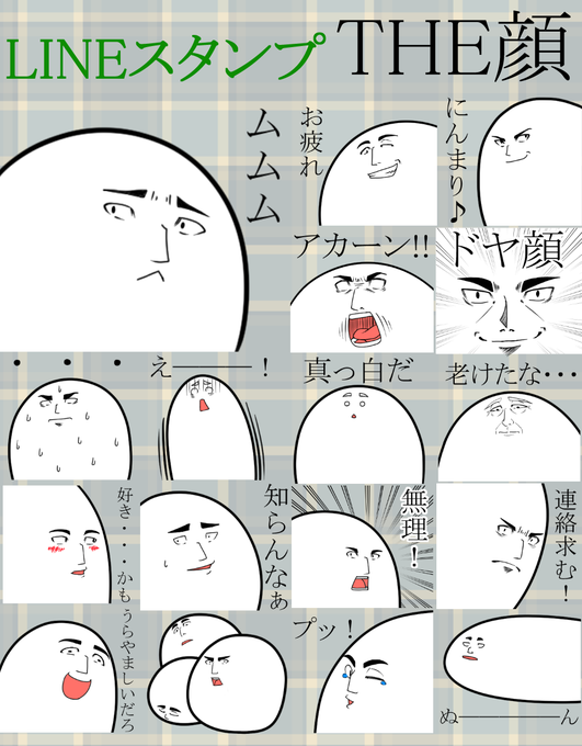 LINEスタンプ「THE顔 その2」完成しました(^-^)