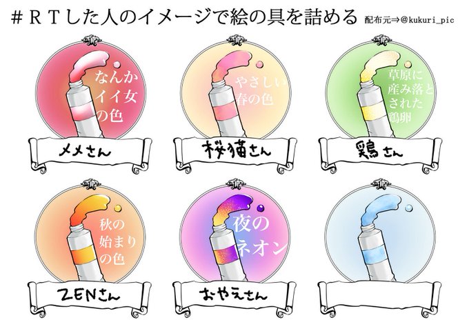 # RTした人のイメージで絵の具を詰める イメージはほんとなんとなくなのであんまり深く考えないでください!怒らないでください!ありがとうございました!