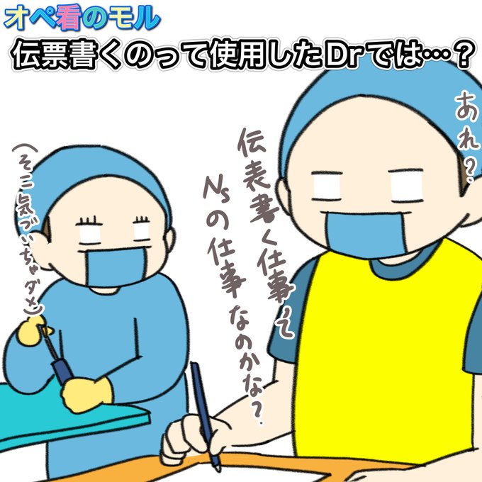 使用した器械の購入伝票とか修理伝票の記入って、よく考えたら看護師の仕事じゃなくて使った(壊した)Drとか事務の仕事では…? #手術室 #オペ看のモル #手術室看護師 #看護師 #看護学生 #オペ看 #イラスト