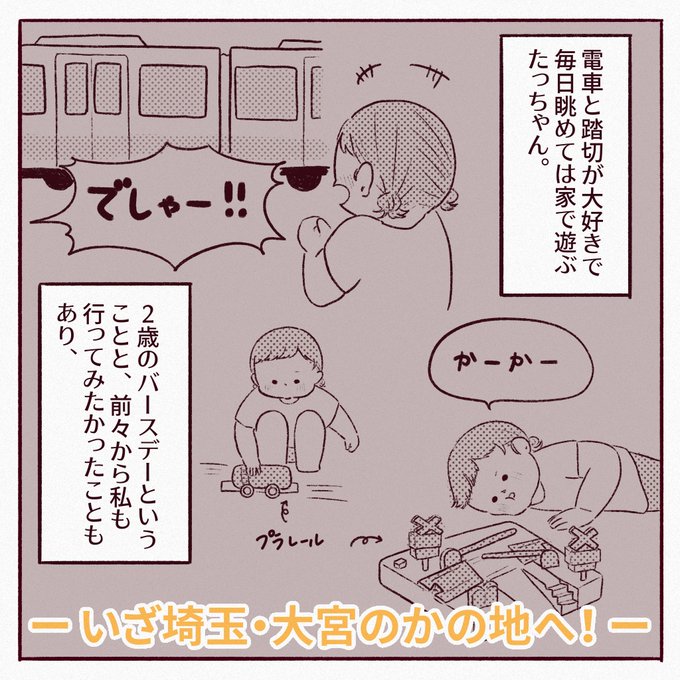 埼玉の鉄道博物館へ行ってきました🚃 でしゃーとかーかー大好きなたっちゃんはもちろん、夫婦共に線路じゃないところに電車があるだけでテンションがあがる族の民なので親もめちゃめちゃ楽しかった…✨ #てっぱく #育児絵日記 #育児漫画
