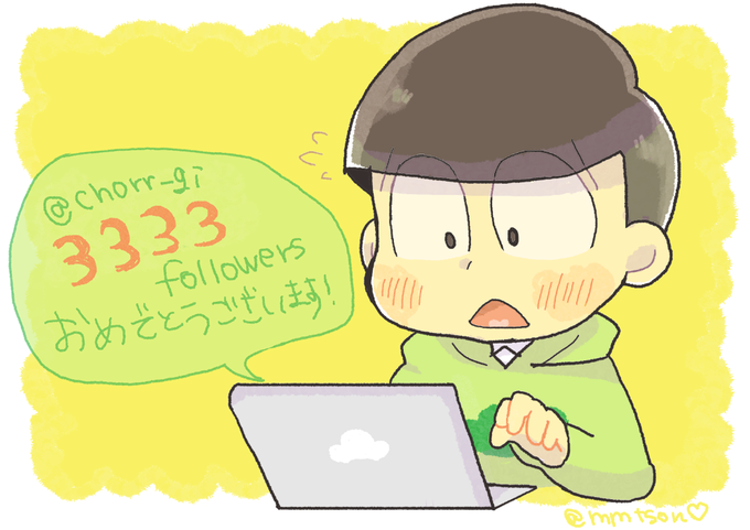 @chorr_gi ちょろまつくん3333フォロワーおめでとう!!! ささやかながらお祝い絵を描きました☺💚 日々TLに癒やしをありがとう~ これからもよろしくね!