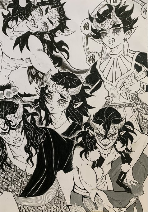 👹の詰め合わせ〜 今回は色なしで! #鬼滅の刃イラスト #模写 #模写イラスト #半天狗 #喜怒哀楽 #憎珀天 #可楽 #積怒 #哀絶 #空喜 #刀鍛冶の里編