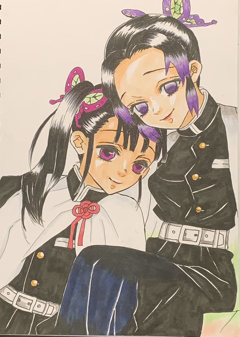 昨日のカナヲちゃんに引き続き 今日はしのぶ姉さんと一緒に🦋 しのぶちゃんの優しい表情が特にお気に入り💜 #鬼滅の刃イラスト #栗花落カナヲ #胡蝶しのぶ
