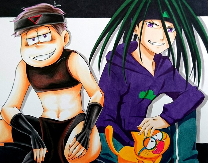 どう描いても一松が変態にしか見えなくてww😂ポーズめっちゃ悩みましたwwwお互い案外似合ってる??