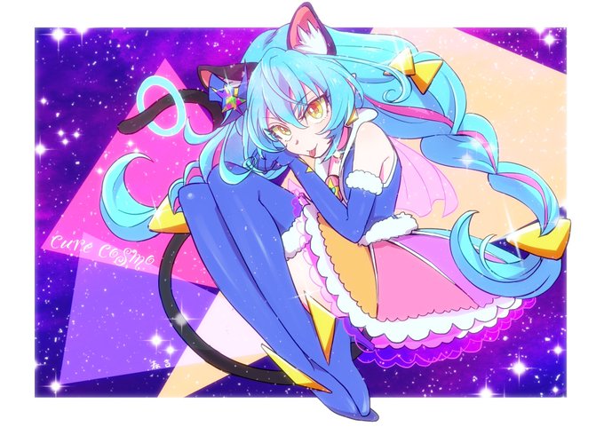 今日のプリキュアユニちゃん歓迎回だから、て キュアコスモ描いて待ってたのに完全にフワ回やった、、 ビジュアルがすごく好き #キュアコスモ #precure