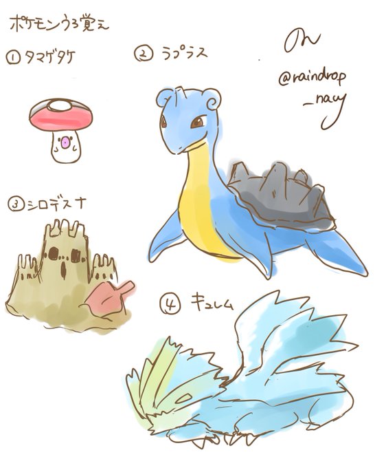 お題:タマゲタケ、ラプラス、シロデスナ、キュレム、パンさんが描いたおまけチルット