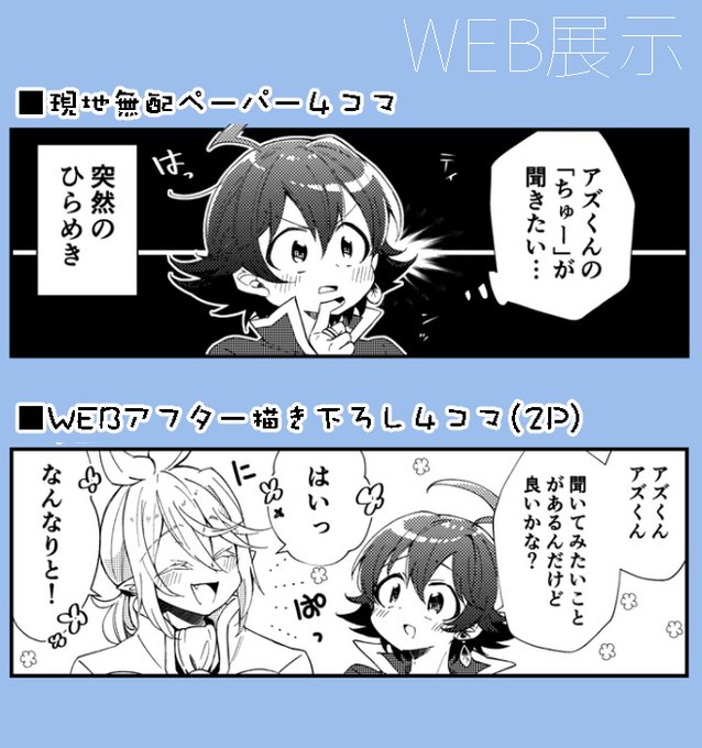 6/11:いる明日アフターでは、 現地イベの新刊+グッズの通販(とら&BOOTH)+WEB展示予定。 展示は無配の4コマと、新しく描いたやつです。よければ遊びにきてください~🍙💪