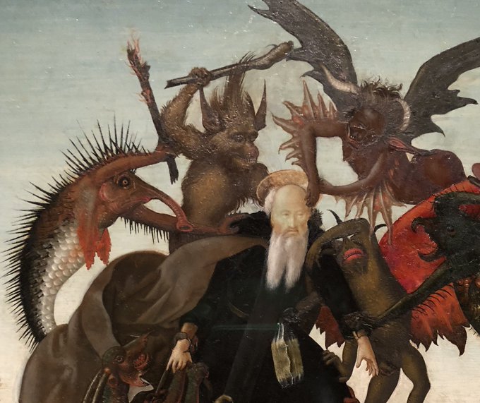 Michelangelo, “The Torment of St Anthony,” the artist’s earliest extant easel painting, from @KimballArt after a print on the same theme by Martin Schongauer @ngadc #Michelangelo @metmuseum
