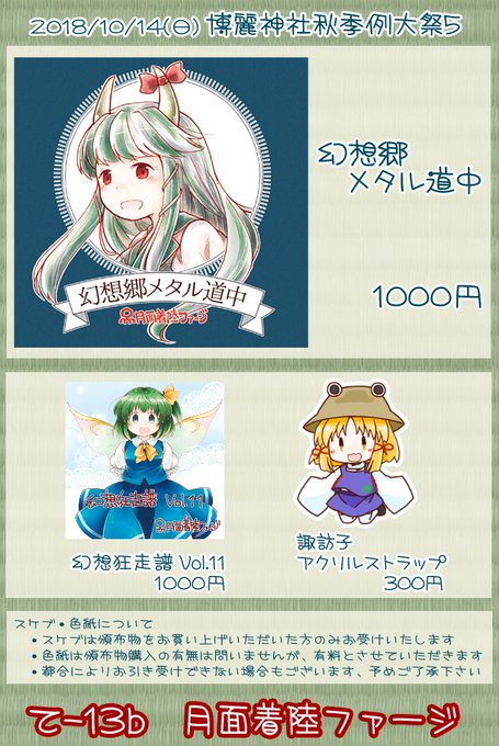 秋季例大祭よろしくお願いします!て13bです!
