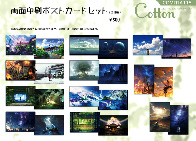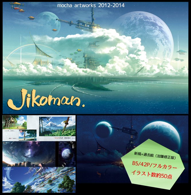 COMITIA118【D01a】Cotton頒布物① イラスト集『Jikoman.』 リアル系&ファンタジーの風景メインのイラスト集です。
