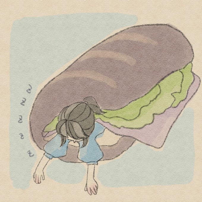 3月「パン」。ようやく初参加できたー。 私はパンで寝る💤 #art_ippi