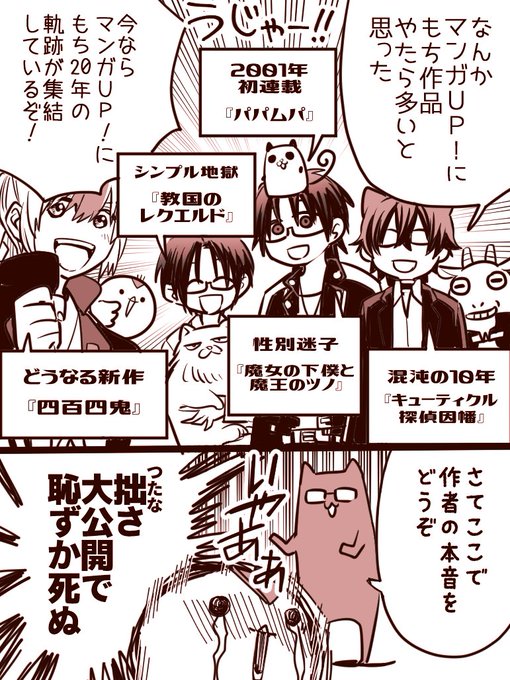 マンガUP!での配信記念☆もちキャラ座談会!(ロッサリ) #四百四鬼 #毛探偵 #魔女ツノ #パパムパ