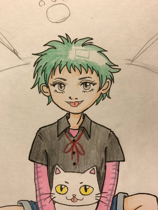 メチャクチャ眠くて、意識遠のきながら色ぬりしてたら、頭に謎の四角を描いてた…(震) 何故これを描いたのか全く分からない! 寝ぼけこわい!! 因みにゆるくない絵もたまに描きます #シロクロにゃんこ展
