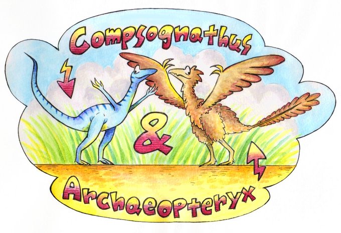 #恐竜 #コンプソグナトゥス #アーケオプテリクス #始祖鳥 #水彩 #水彩画 #絵描きさんと繋がりたい #dinosaur #compsognathus #archaeopteryx #watercolor