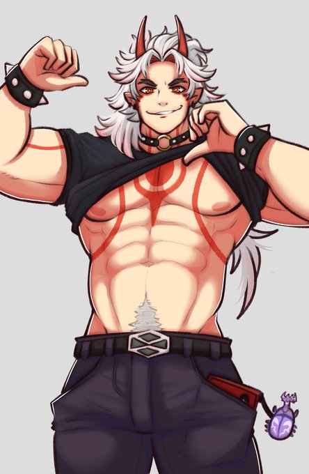 I wasn't sure how I was going to show my appreciation for the 2000 follows, but since this happened at the same time as my recent Itto post getting to 2k likes too, I decided Mister Itto should show his abs as thanks 💪✨🥳