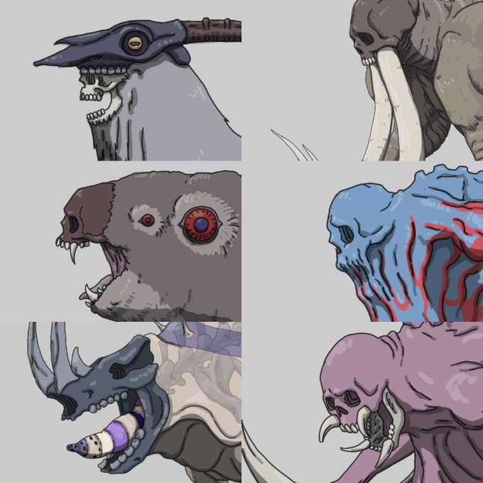 🐐🐘🐨🦃🦏🦛🦒🦐🐳🦘🦨🦜 干支以外の絵文字がある生き物縛りで12枚 #creaturedesign https://t.co/0RaE5gP4Lr