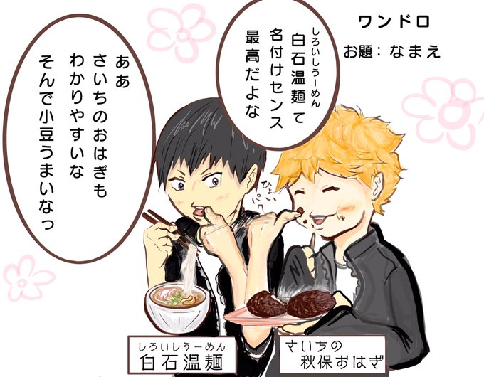 お題 :なまえ #影日ワンドロ #kagehina_d_w ハイキュー展やカフェが始まったので 宮城名物のなまえに触れることにしました🍜🍡