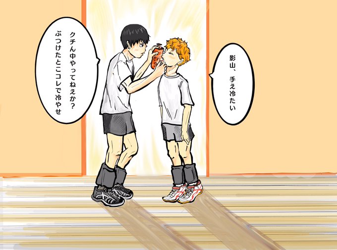 先日参加させて頂いた影日ワンドロで 日向君に顔面レシーブさせ影山君に恐い顔をさせて しまったのでせめてものお手当てです🏥 https://t.co/BTvB3RkkUa