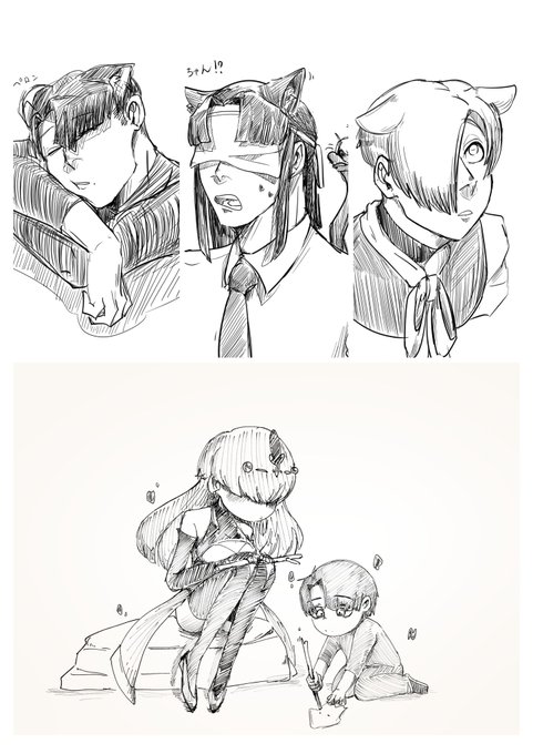 @nikusikakuwanga @metegaku_01 こんな感じの紫の目の細い三白眼です! ごめんなさいもっと他に表情あるだろって感じなんですけど、、どうしても照れた表情させたくて(変態)…😇 ヤクモの目見たらシグマくんはどんな反応するんでしょうか…🤔
