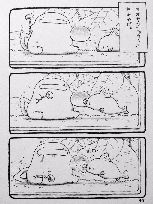 オオサンショウウオ、おみやげ2つ目…? 昨日のまんがの続きです〜!