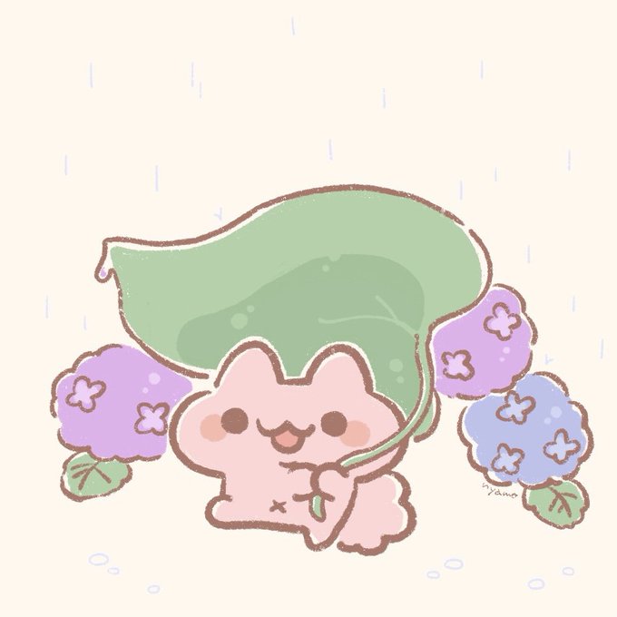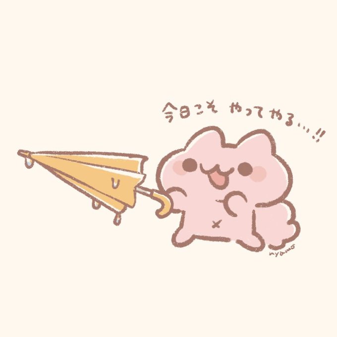 フッフッフッ✨🌂 #イラスト #もこにゃん #雨