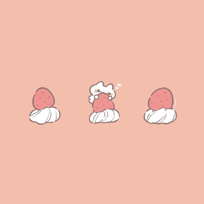 いちごおいしー! #イラスト #もこにゃん #いちご