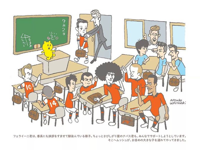 これ素敵だから見てほしい!エジル様がア〜セナルに加入したときのイラストなんだけど、転入生みたいに監督に連れてこられるエジル様が可愛いし、さりげなくラモスもいるよ✨
