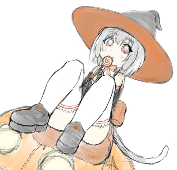 ハロウィンフィニュちゃん描き始めました。ニーソも似合うかな?
