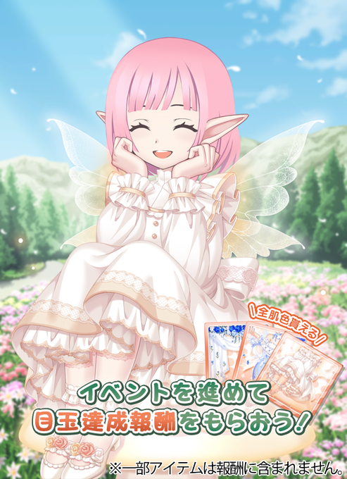 サラリなのです!夕方のお知らせなのです! 【春告ぐ風にのせて】イベントに新しいアイテムが追加されたのです! あいちゃんが妖精さんの衣装を着ていたのです!背中の羽がとても綺麗なのです♪ #moecanch