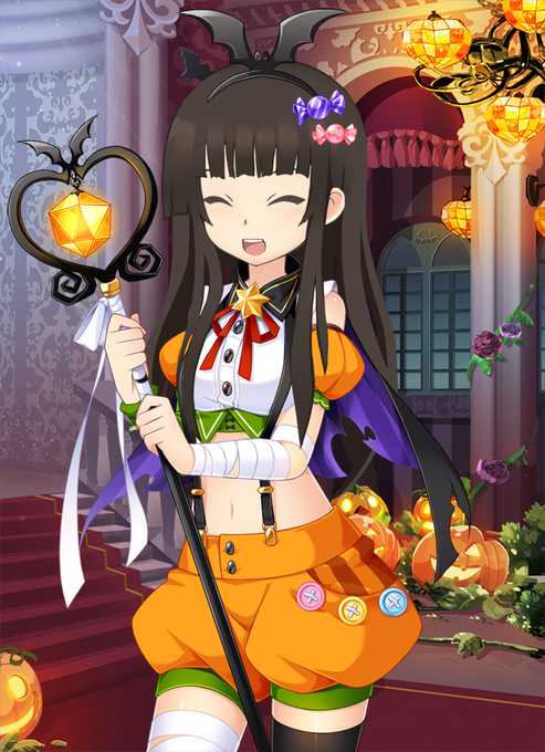 イララよ。 今日からハロウィントークイベントが開催しているわ。 マイルームの専用ボタンから参加が出来るわよ。 頭装飾と衣装が手に入るから見逃さないように。