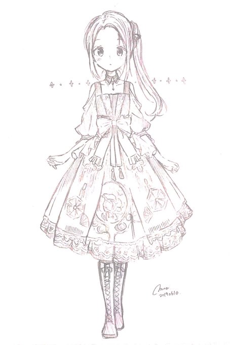 妹から教えてもらった、@LolitaWardrobe様の和風なロリータドレスをお借りして描いてみました´`*