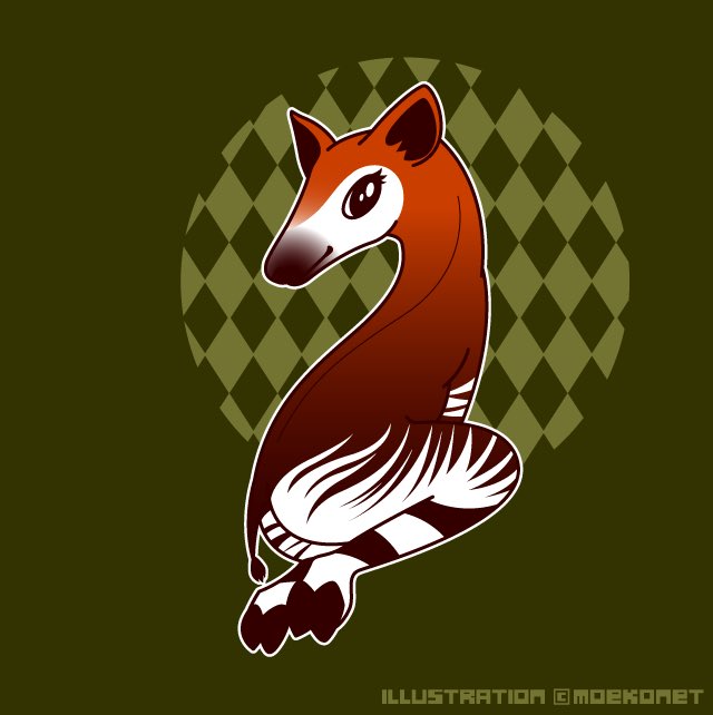 イラストのリクエストいただきました。森の貴婦人と呼ばれるだけあって、もう脚の模様がストッキングにしか見えない。ジャイアントパンダ、コビトカバ、と並ぶ世界三大珍獣の1匹だったりします。