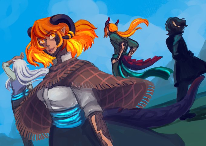 @lysapenrose @takomaryy Well, I am available and into TTRPGs! I have a more comic-book style but I'm definitely interested. My portfolio's at https://t.co/g5VNo8GG0u and here are some more recent pieces for funsies from various campaigns I have been in!