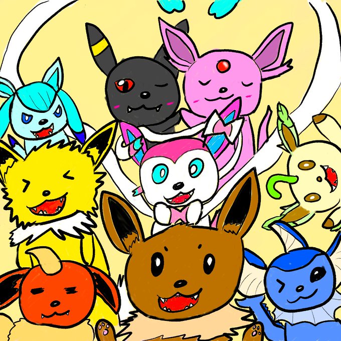 @nonchan_1128 のん先生 うちのブイズを・・・ 「(みんな)逃げろ〜!!」 「(サンダース)診てくれ〜!(電気ビリビリ!)」 「(グレイシア)しまった!マヒした・・・!(しびび・・・)」
