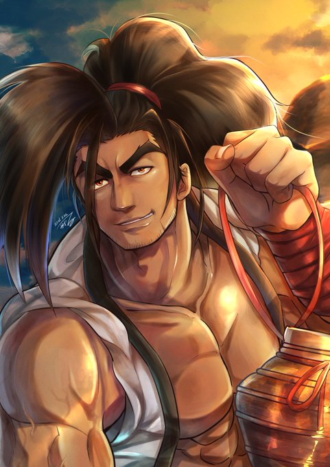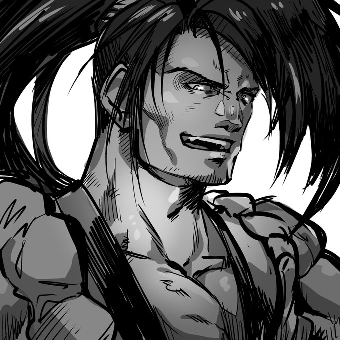 嬢ちゃんがフォロワーから絵を貰ったみてえだぜ!すげぇかっこいい俺をありがとうな!筋肉がよく書けてるぜ! 嬢ちゃんは髪をいきなり引っ張るんじゃねえ!