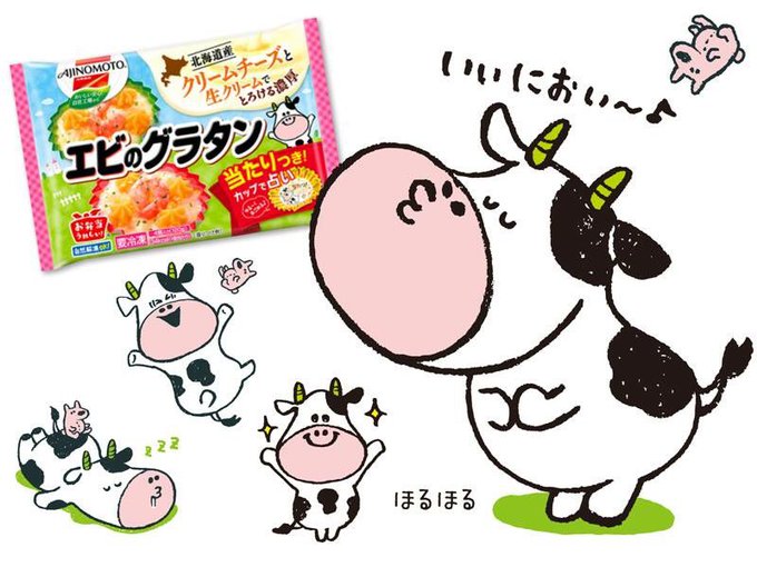 味の素冷凍食品『カップに入ったエビのグラタン』の「ほるほる」と仲間たちのキャラクターとカップデザインをさせて頂きました。