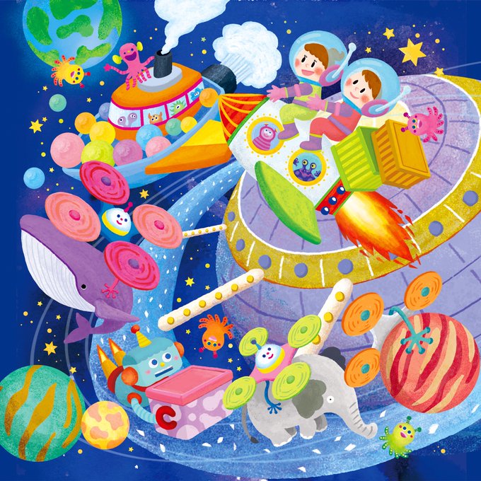 大阪の海運業、港湾運送業、倉庫業などを行う企業さまのお仕事。「夢はこぶ」がテーマのイラスト、空想のものを描くのが難しいけど自由で楽しかったです💫