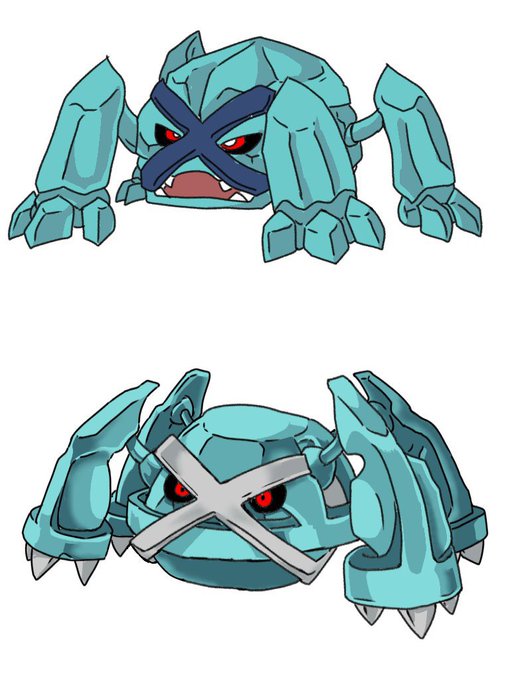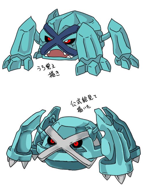 @mirin_pksn アンディさんの方が早かったですが私もメタグロス描きました!上が記憶のみ、下がお手本ありです。